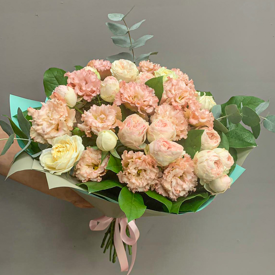 Букет "Ванильный пломбир" из кустовых пионовидных роз и эустомы арт. 45006