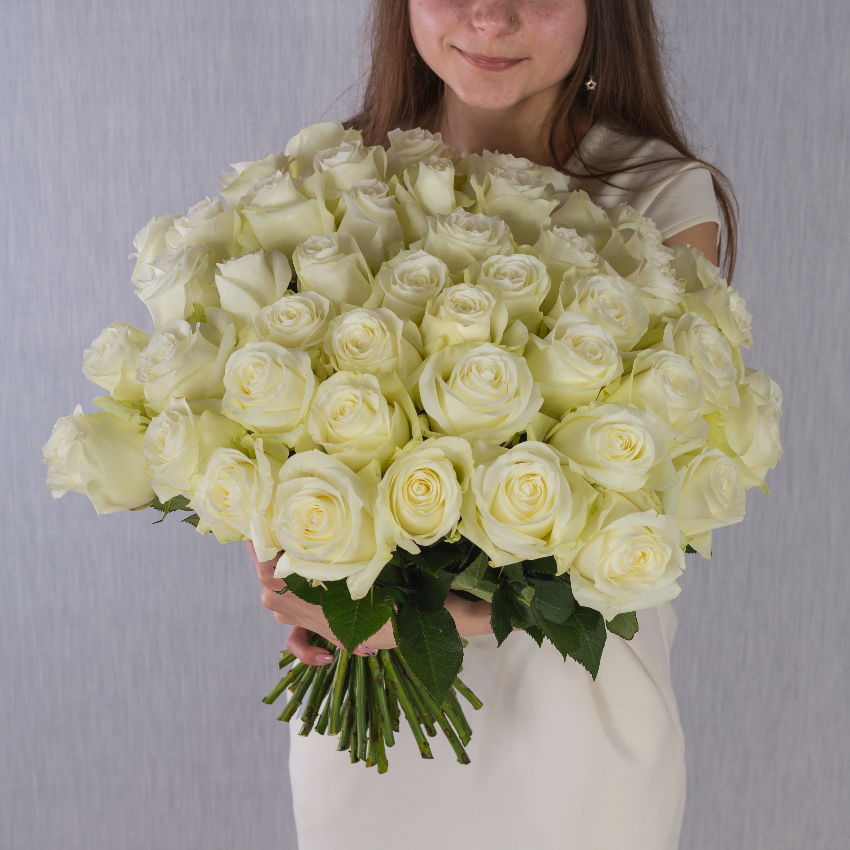 Букет из 7 Белых крупных роз 60 см арт. 36402