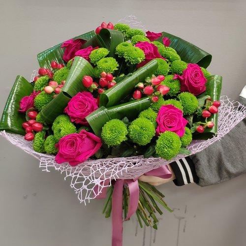Букет "Амели стандарт. Размер L" из кустовой розы и гербер 27788/L